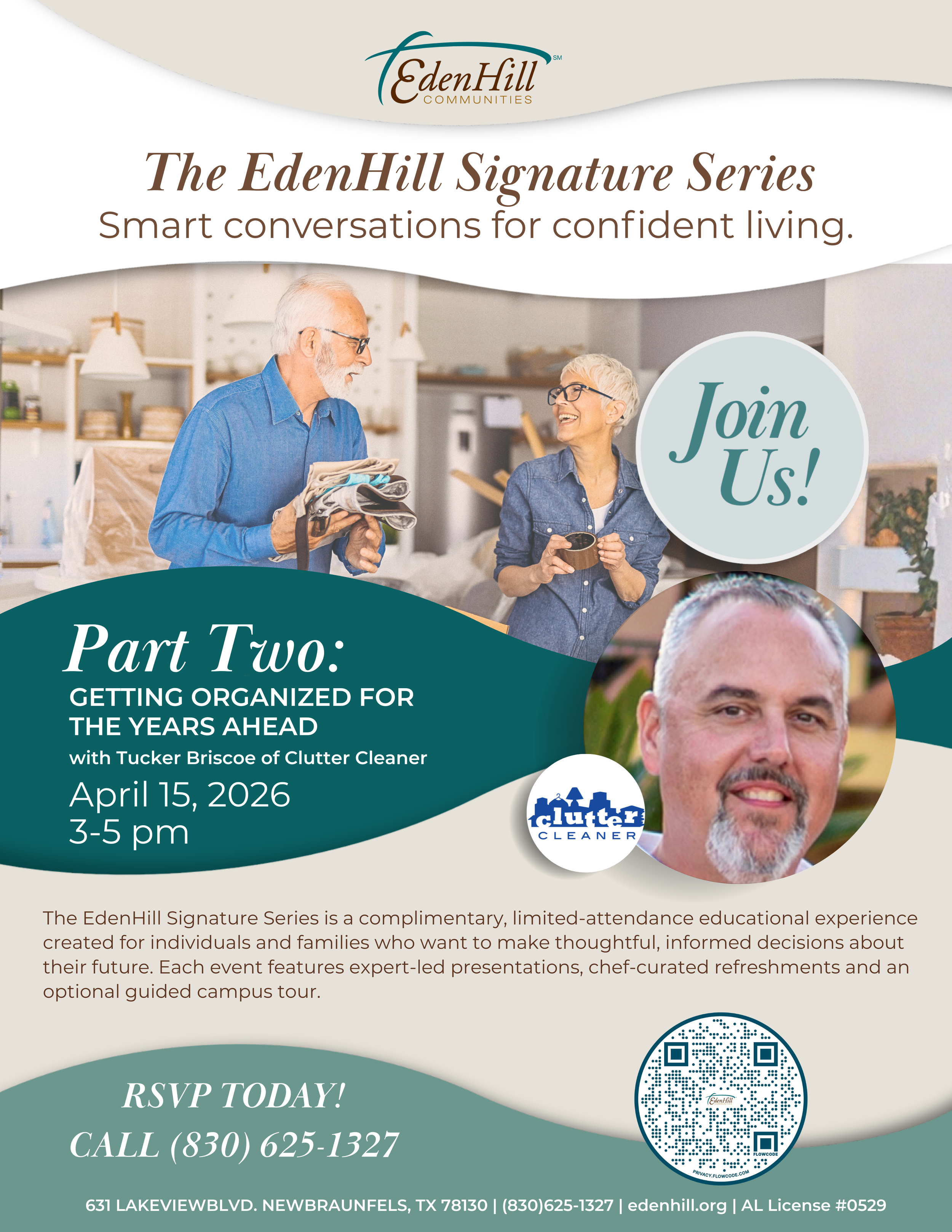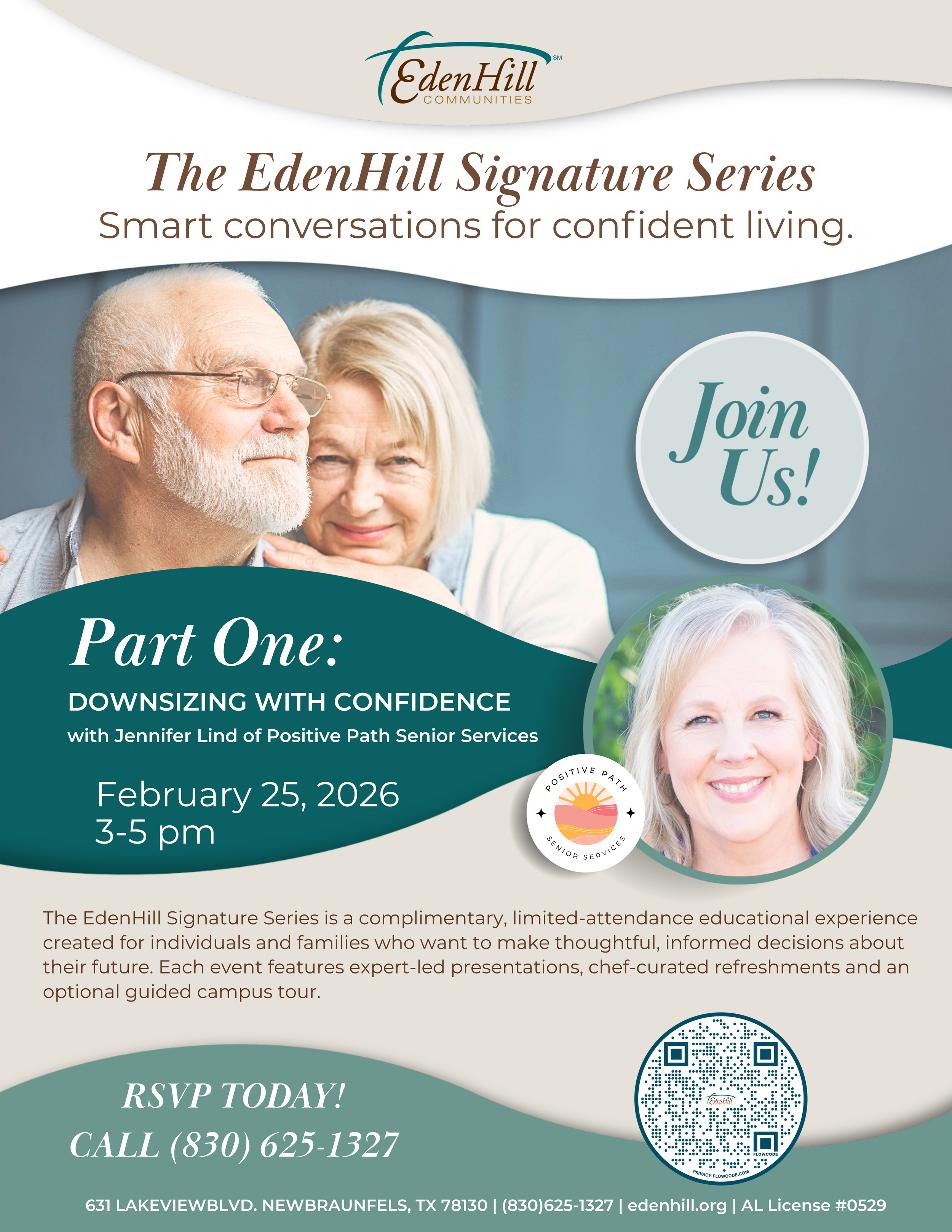 The EdenHill Signature Series is a complimentary educational event series offering expert-led conversations designed to help individuals and families make confident decisions about senior living and future planning.