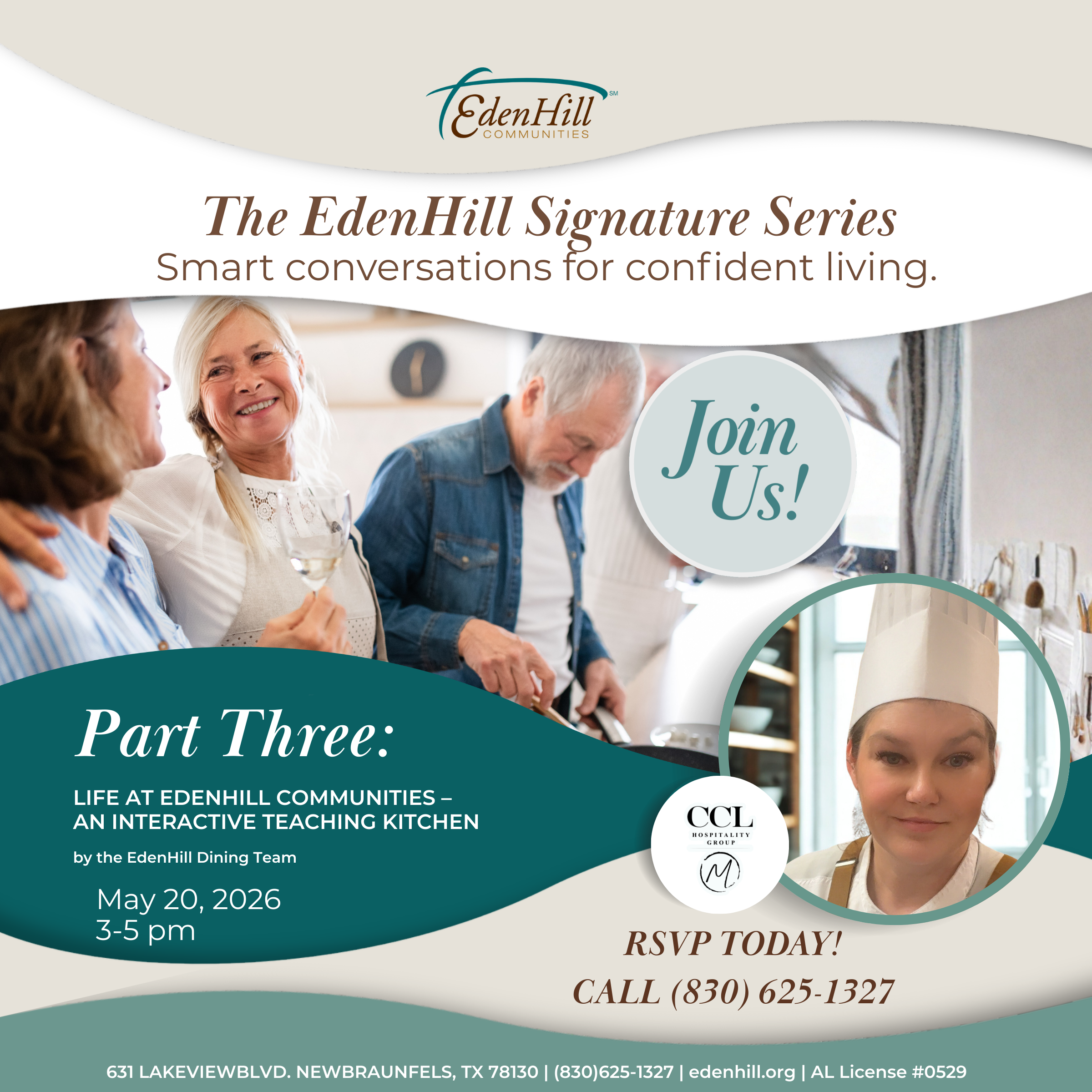 This unique session features EdenHill’s Dining Team, led by Regional Executive Chef Nicole, and offers a behind-the-scenes look at how thoughtful dining experiences support vibrant, connected living.